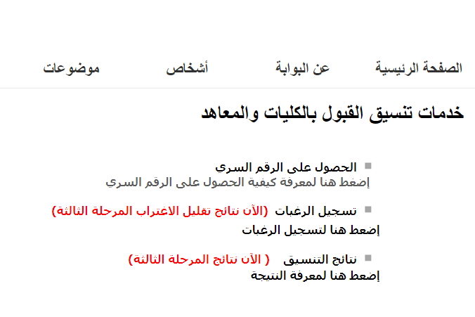 الان فتح تسجيل رغبات المرحلة الثالثه للتنسيق 2018 سجل الان رغباتك