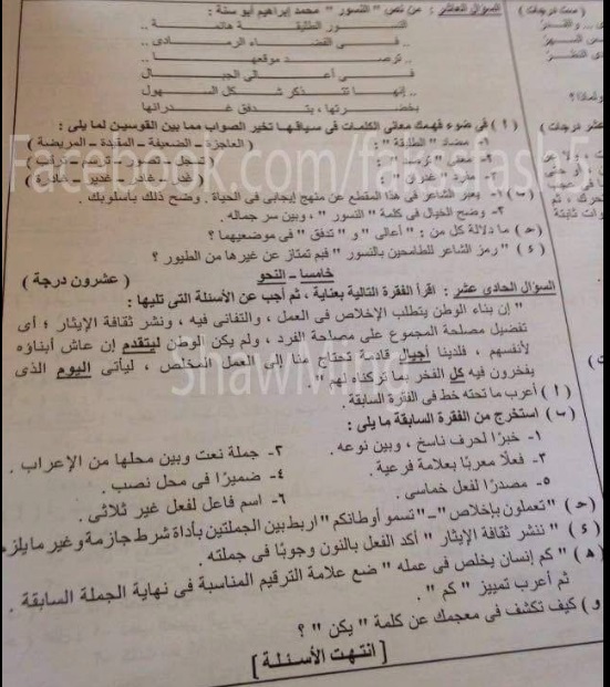 بالصور تفاصيل تسريب امتحان الثانويه العامه اليوم 5 6 2016 مادة العربى