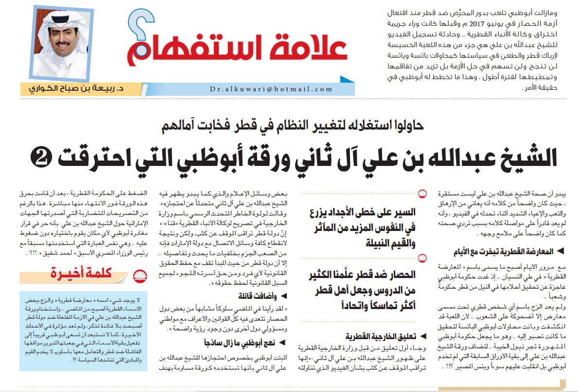 صحيفة الشرق قطر On Twitter الشيخ عبدالله بن علي آل ثاني ورقة أبوظبي التي احترقت 2 اقرأ مقال د ربيعة بن صباح الكواري Https T Co Qbvnk3sblg قطر الإمارات Https T Co Vpzdasjquv