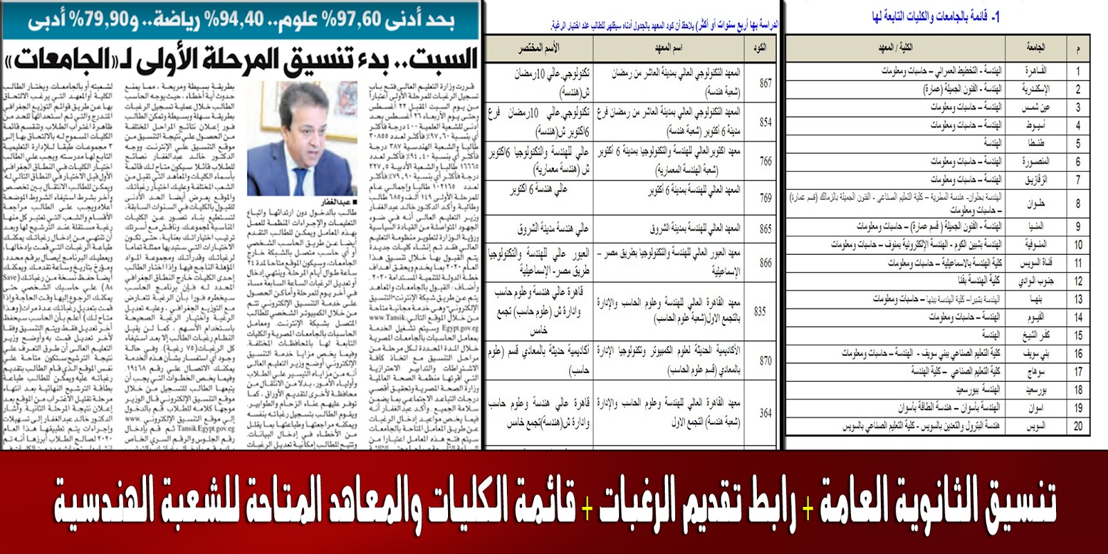 عاجل تنسيق الثانوية العامة ورابط تقديم الرغبات قائمة الكليات والمعاهد المتاحة للشعبة الهندسية