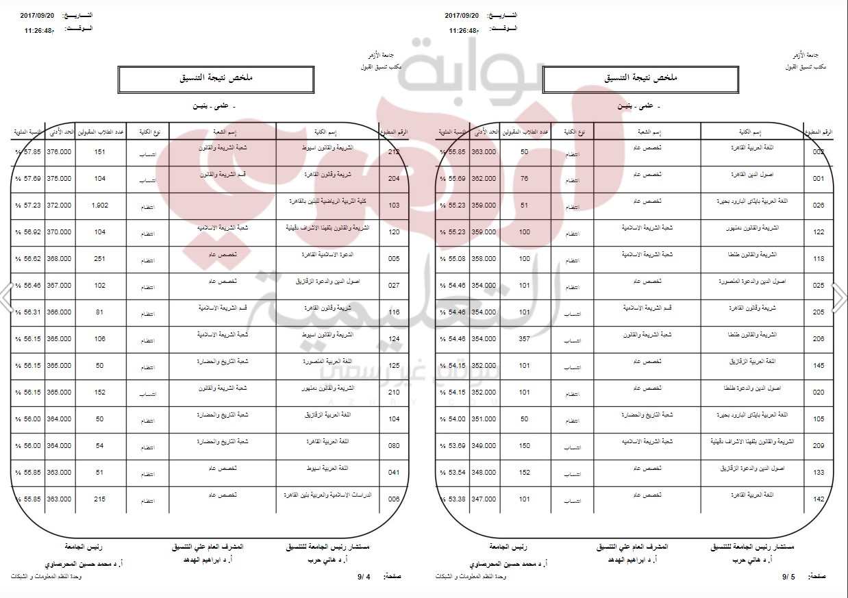 تنسيق الثانوية الأزهرية 2019 2020 علمي بنين وبنات الحدود الدنيا لجميع الكليات دليل الوطن