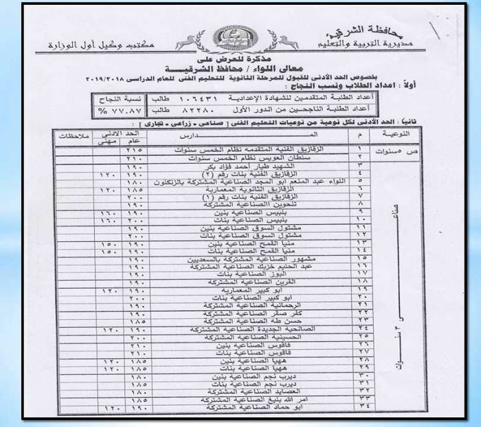 الشرقية الان تنسيق ودرجات القبول بالثانويه العامة والدبلومات الفنية بالشرقية للعام 2018 2019