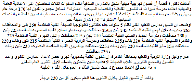 تنسيق الدبلومات الفنية 2020 صناعي زراعي تجاري توقعات بالحد الأدنى للالتحاق بالكليات والمعاهد شبابيك