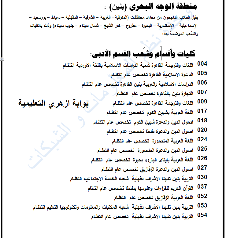 الكليات التي تقبل طلاب منطقة الوجه البحرى علمي وادبي بنين 2016 2015