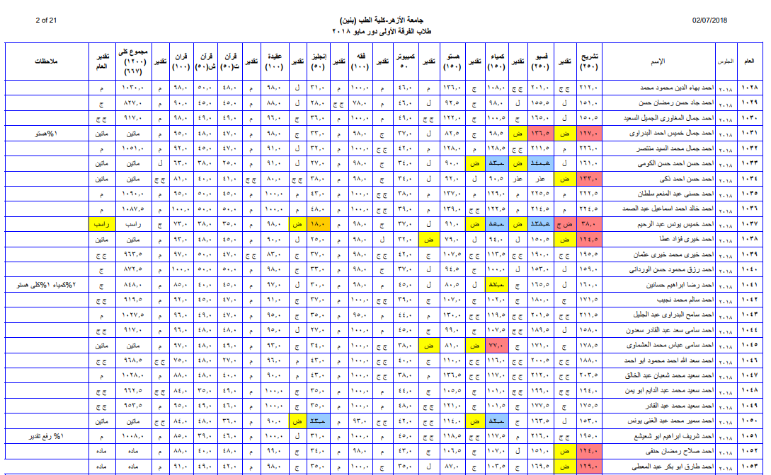 نتيجة إمتحانات كلية الطب جامعة الازهر 2019 2020 بالاسم ورقم الجلوس Pdf