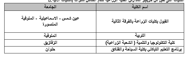 تنسيق دبلوم المدارس الفنية الزراعية 2018 نظام 5سنوات وبيان بالكليات والمعاهد المتاحه