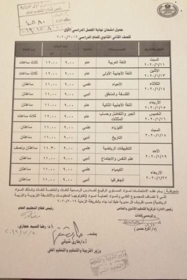 جدول امتحانات الثانوية العامة 2020 الجديد
