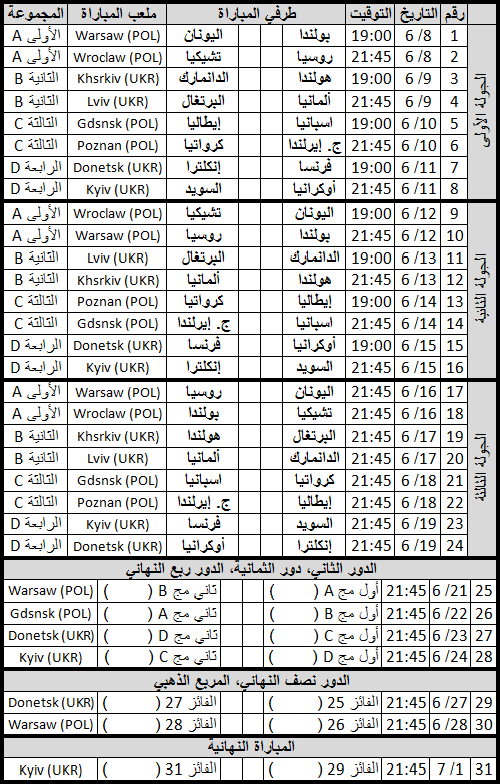 Kuwait Football On Twitter جدول مباريات كأس أمم أوروبا الذي سيبدأ بتاريخ 2012 6 8 حسب توقيت دولة الكويت Http T Co Nf6hh4wi